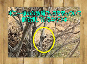 いつもは散歩道の林道で見かけるのですが、窓からポニー達の放牧場をながめていると、窓の手前のクルミの木にアカゲラが止まり、枝から枝に移り飛んでは、木の中にいる虫を捜していました。この辺にはキツツキ類が結構いて、特にこのアカゲラは一番見かける頻度が多いキツツキです。頭に赤い帽子を被っているようで、鳥自体の姿は可愛らしいのですが、以前、頭上で木を突っついているこの鳥を見つけた時に、木を突っついている音と同時に、小さな木くずが四方八方に勢いよく飛び散っているのを見て、小さな頭の先に付いている、そのもっと小さな嘴の硬さと鋭さには、本当に驚かされました。そんな嘴で、硬い木に穴をあけて虫を取り出し食べる。その力を生み出す仕組みはどうなっているか、多分いくら仕組みを説明をされても、私の感覚は納得は出来ないと思います。超自然の不思議な力です。 |