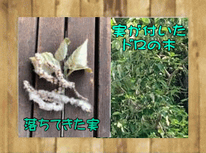 お店の裏山に大きなドロノキがあります。かなり高い木で木の種類は数えるくらいしか見分ける事が出来ない私は、ドロノキなんて、もちろん何処に生えているのかも分かりませんでした。ただ、5月末から6月にかけて白い綿毛が舞うので、この近くのどこかに生えているのだろうとは思っていました。ある日外に出てみるとほんの少しですが、綿毛が舞っていました。しばらくじっと見回していると、パチンという小さな音が聞こえてきたので、音のする方をしばらく探しながら見ているとまたパチンという音が聞こえて、その音と同時にポトッと綿毛の塊のような物が落ちて来たので拾って見て見ると、写真の左、それはどうやらドロノキの実の綿毛の塊だったようです。翌日また見に行ってみると、夜中に雨が降ったのか、水を含んで重たくなってしまた綿毛の塊が、ボトボト落ちていました。拾って触ってみると、蜜があるのか少しベタベタしていて、独特の甘い香りがしていました。ドロノキは人気の美しい蝶オオイチモンジが卵を産み付けたり幼虫が育つ木です。もしかしたらこの甘い独特の香りが、この蝶引き付けているのかなと・・・。 |