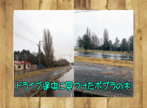 私が小学生の頃通っていた、小学校の校庭・運動場は周りをぐるりとポプラの木に囲まれていました。小学生の頃は身体も小さいこともあって、ポプラの木が物凄く高く感じられました。実際今見ても本当に背の高い木です。最近、ポプラの木はあまり見かけなくなりました。詳しく聞いたわけではありませんが、ポプラの木は老木になってくると、木の中に空洞が出来て、それがだんだん大きくなって、木自体が弱くなり倒れやすくなって、特に学校の校庭などに植えて置くのは、危険なのだと聞かされ納得しました。それでドライブ中にポプラの木を見かけた時には懐かしくて、つい写真をとってしまいました。そういえばと、5月末〜6月にかけて、ドロノキと同じように白い綿毛がフワフワと校庭に舞っていたのを思い出しました。 |