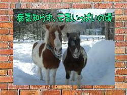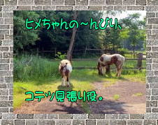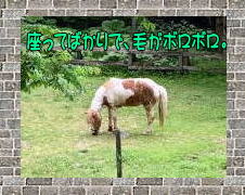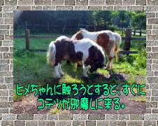 それに比べてヒメちゃんは心配です。毎年と言っていいほど必ず4本中のいずれかの脚が痛みだし、脚を引きずって歩いているのですが、いつの間にか治っていて普通に歩きだすのですが、その治って普通に歩きだすまでの時間が、この頃なかなか治ずに長くなってきているような気がします。それでも食欲だけは劣らず、冬を無事越して今は喜んで青草を食べています。コテッちゃんよりも食に関しては旺盛なのですが・・・、どんどん食べて脚が丈夫になってコテッちゃんのように、がしっり太くなって痛むことなく、元気に歩き回って欲しいと願っています。いつまでも2頭揃って元気ていて欲しいんです。